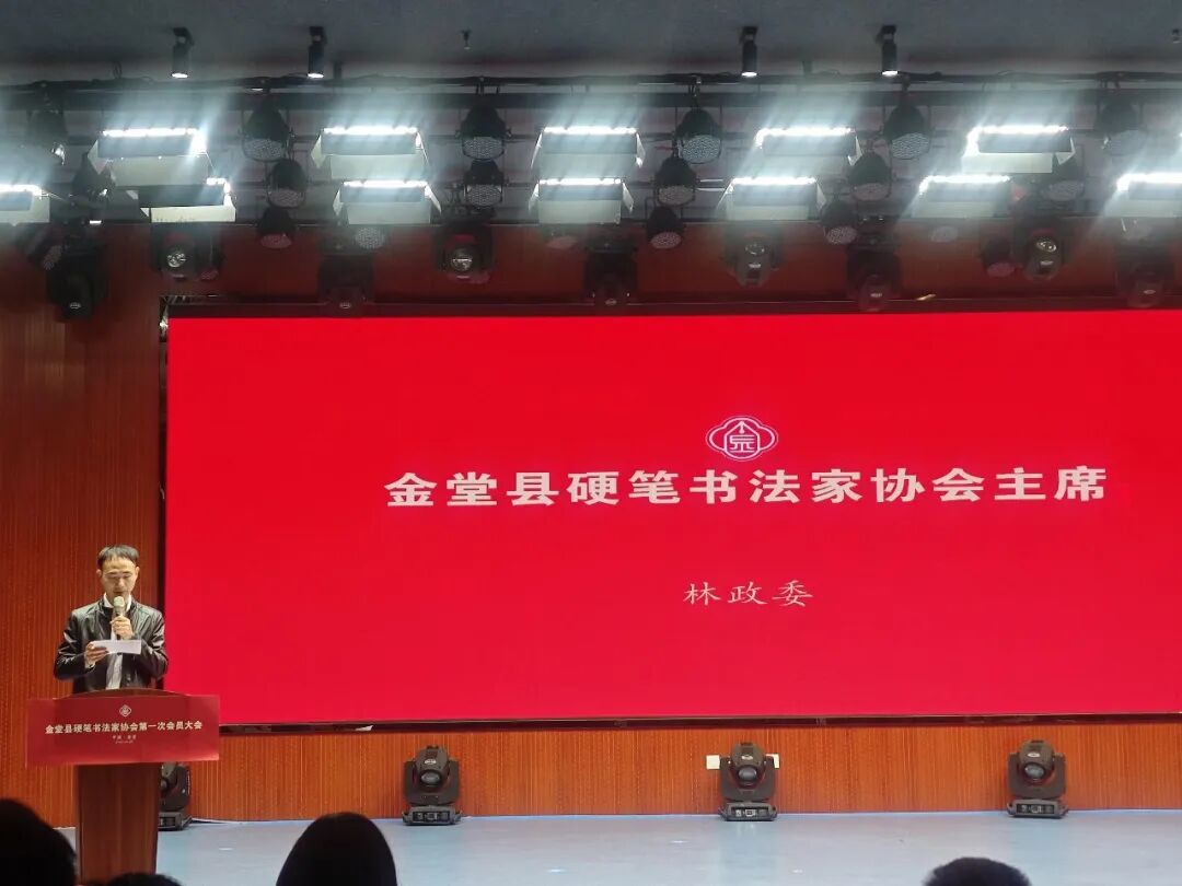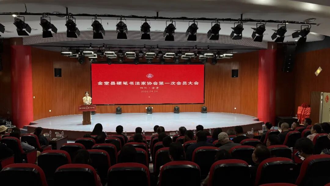 2026年4月24日上午,金堂县硬笔书法家协会成立大会暨第一届会员大会在金堂县文化中心多功能厅隆重召开。大会在庄严的国歌声中顺利启幕,严格按照既定议程有序推进各项工作,圆满完成全部会议任务。会上审议表决通过《金堂县硬笔书法家协会章程》,依法依规选举产生协会第一届理事会及主席团领导班子,林政委同志当选金堂县硬笔书法家协会首任主席。